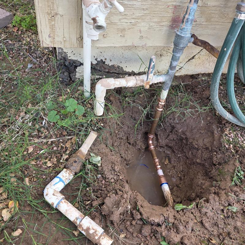 A plumber completed an emergency repair on a main water line in Mesa, Arizona. The work addressed an urgent plumbing issue to restore water service quickly and safely for the property.