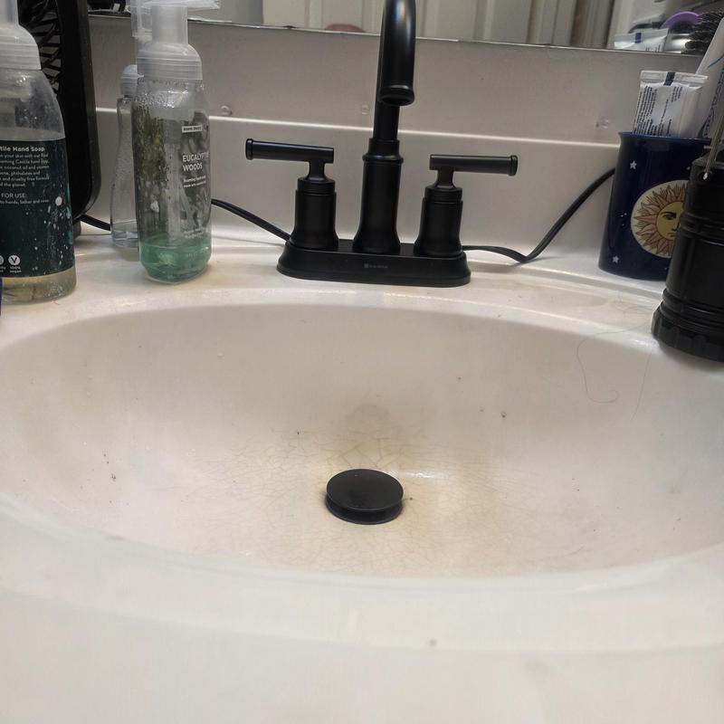 A plumber in Casa Grande, Arizona replaced a lavatory faucet, drain, and angle stops during an emergency visit. The repair was needed after a broken angle stop caused water to spray. The service restored water control and prevented further damage.