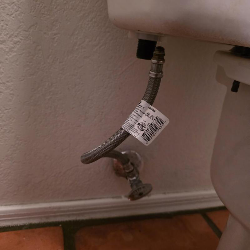 A plumber in Chandler, Arizona responded to an emergency call for a broken toilet supply line. The existing angle stop failed to shut off the water. The plumber replaced both the angle stop and the supply line to restore proper function and prevent further water damage.