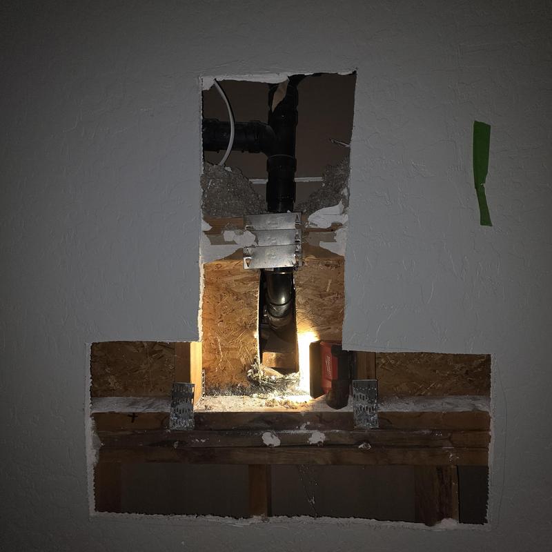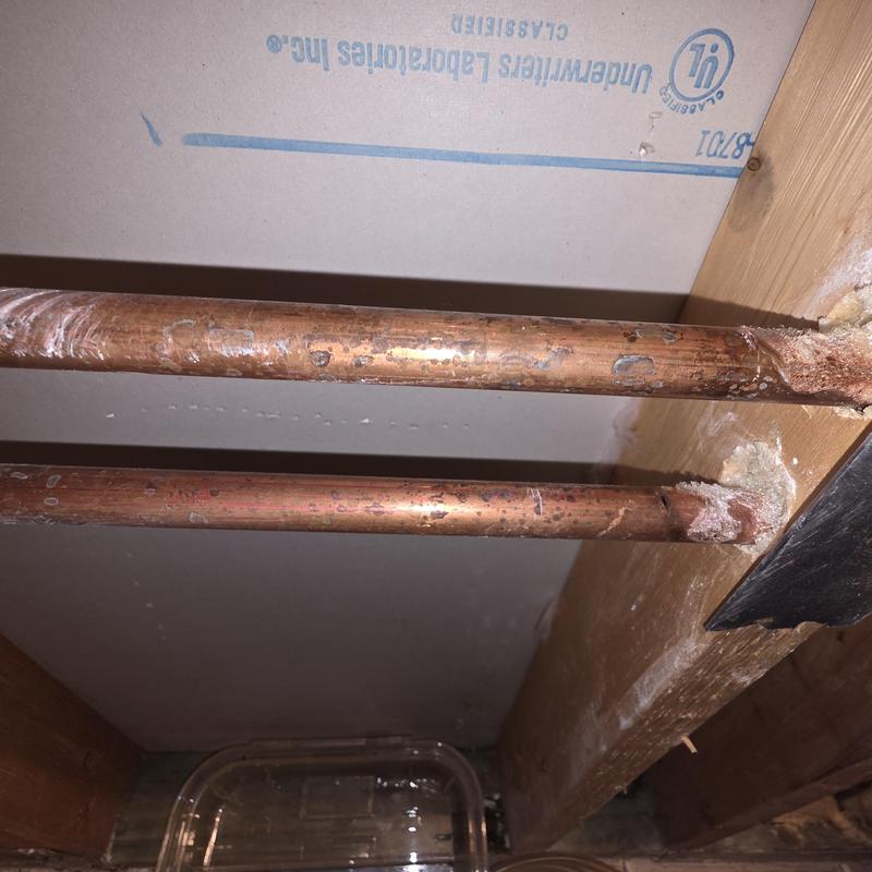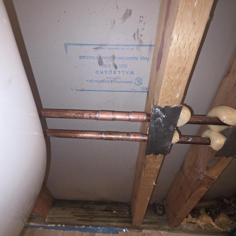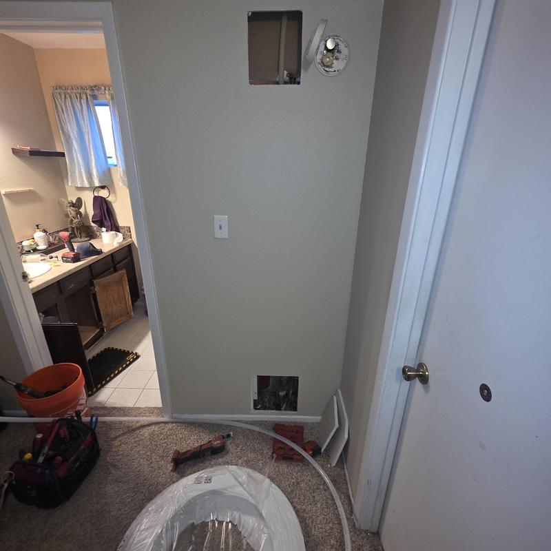 A plumber repaired half-inch hot and cold copper water lines inside a bathroom wall in Chandler, Arizona. The work focused on resolving issues with damaged plumbing behind finished interior surfaces.