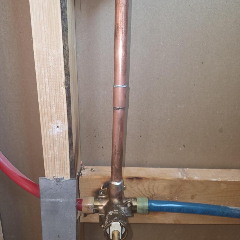 A plumber repaired a copper leak on a shower valve in Apache Junction, Arizona. The service involved identifying the leak and restoring the shower valve to proper working condition.