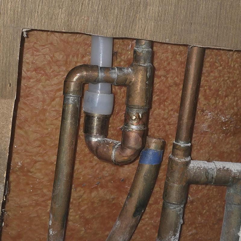 A plumber repaired a broken copper pipe at a PEX adapter that caused flooding from an upstairs bathroom in San Tan Valley, Arizona. The emergency service stopped further water damage and restored plumbing function in the home.